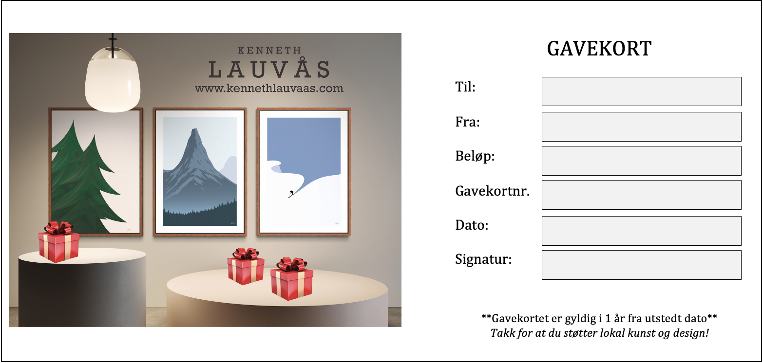 Er du usikker på hvilken plakat eller hvilket fotografi som passer best som gave? Med et gavekort gir du mottakeren friheten til å velge selv blant unike designplakater og landskapsfotografier.