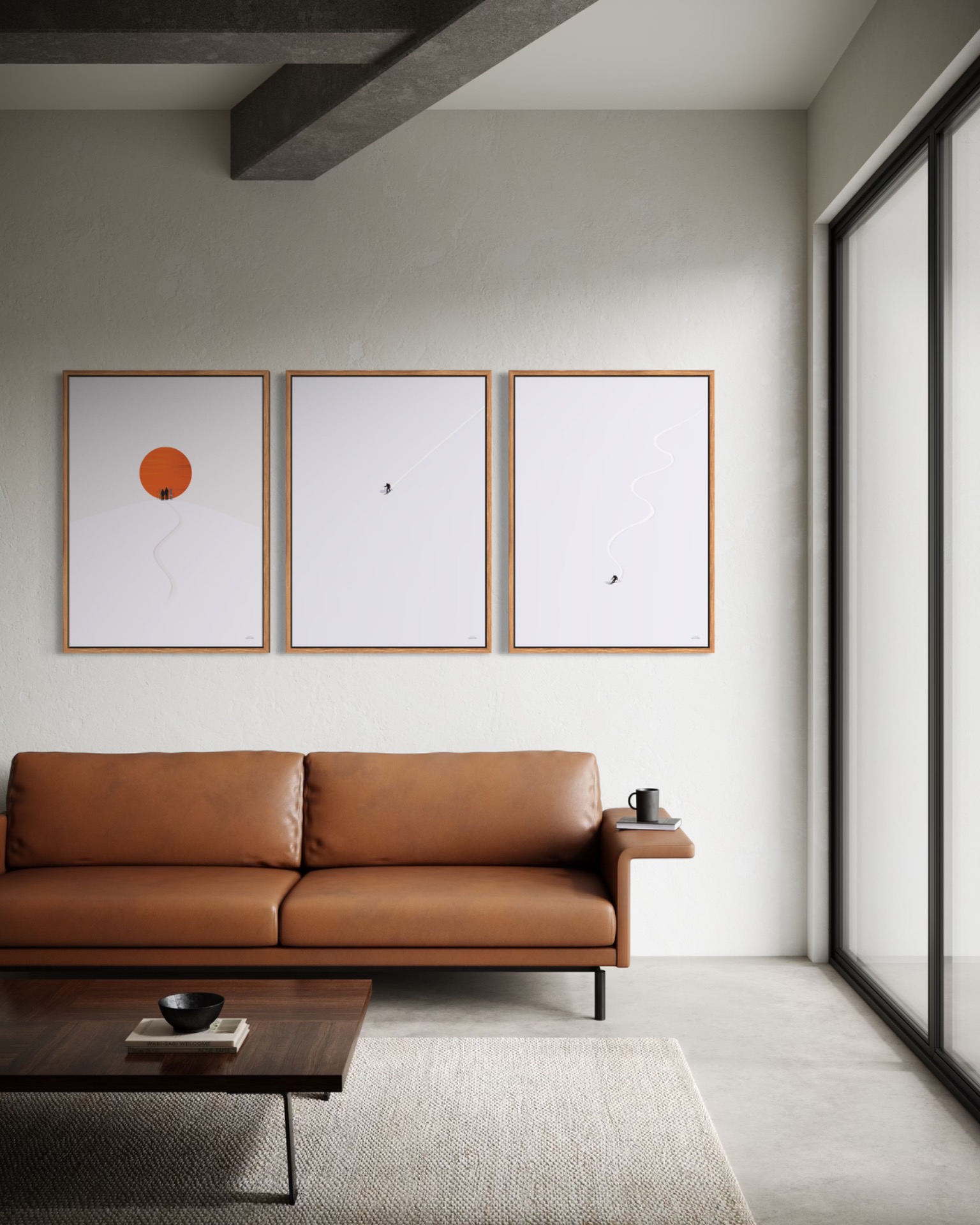 Det rene uttrykket lar rammen og øvrig interiør tre tydeligere frem. Driv er designet til å kunne kombineres med andre plakater innenfor samme kategori, for eksempel "Spor" og "Snøfjellet".