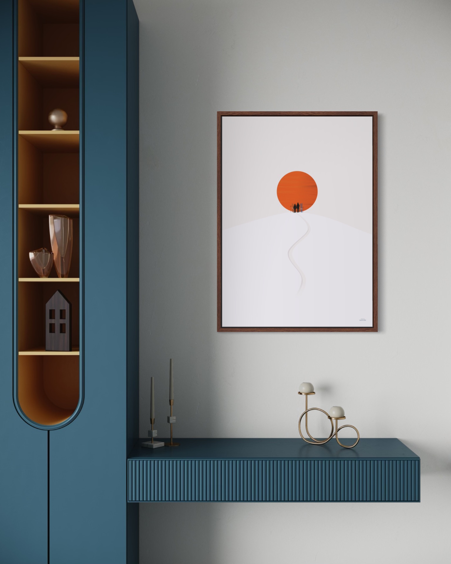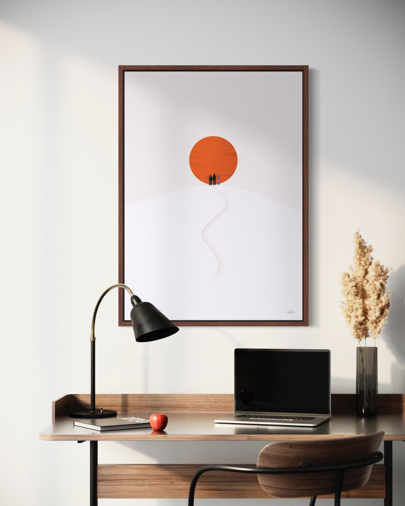 Tegnet for hånd med rene linjer og begrenset fargebruk for et tidløst uttrykk. Trykket av Cewe (Japan Foto) på Fujifilm matt fotopapir som reduserer refleksjoner til et minimum. Ramme kjøpes separat.