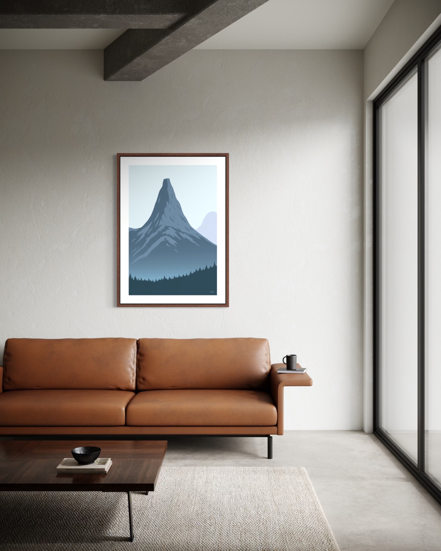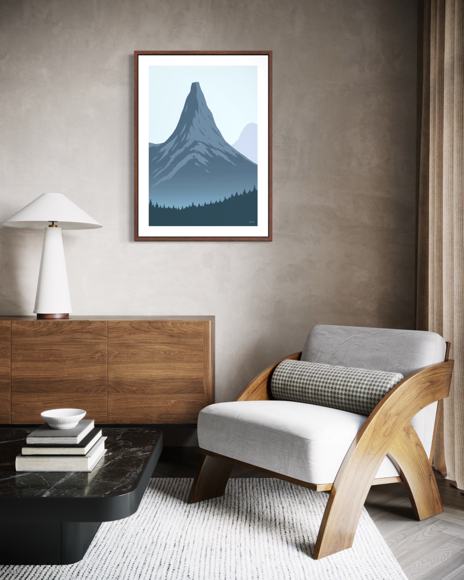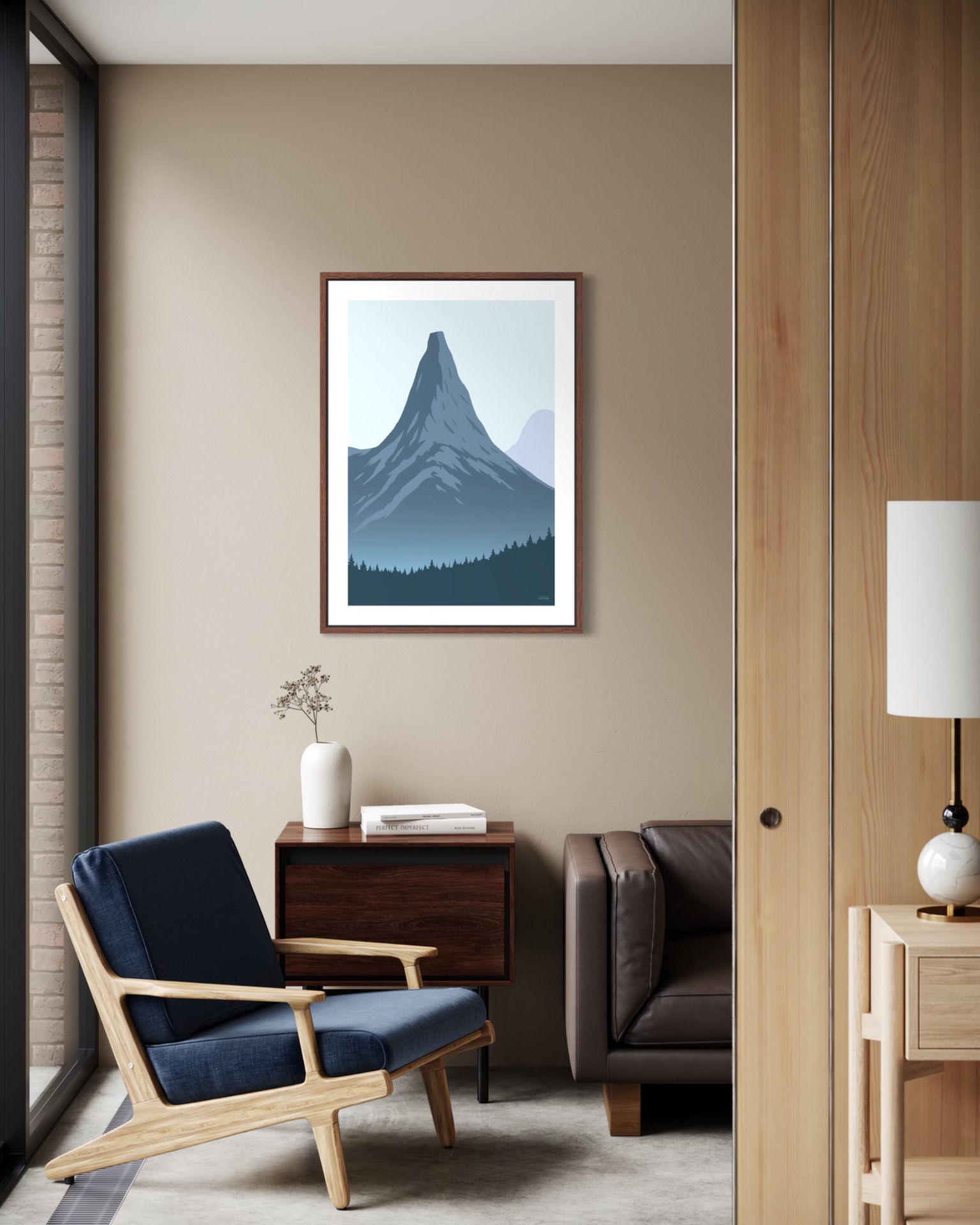 Tegnet for hånd med rene linjer og enkel fargepalett. Trykket av Cewe (Japan Foto) på Fujifilm matt fotopapir som gir minimalt med fleksjoner.