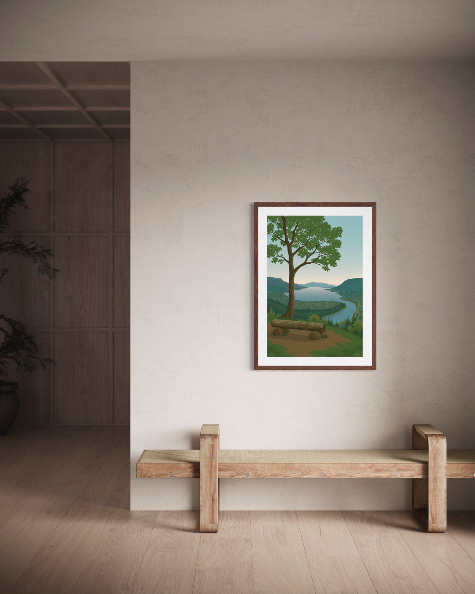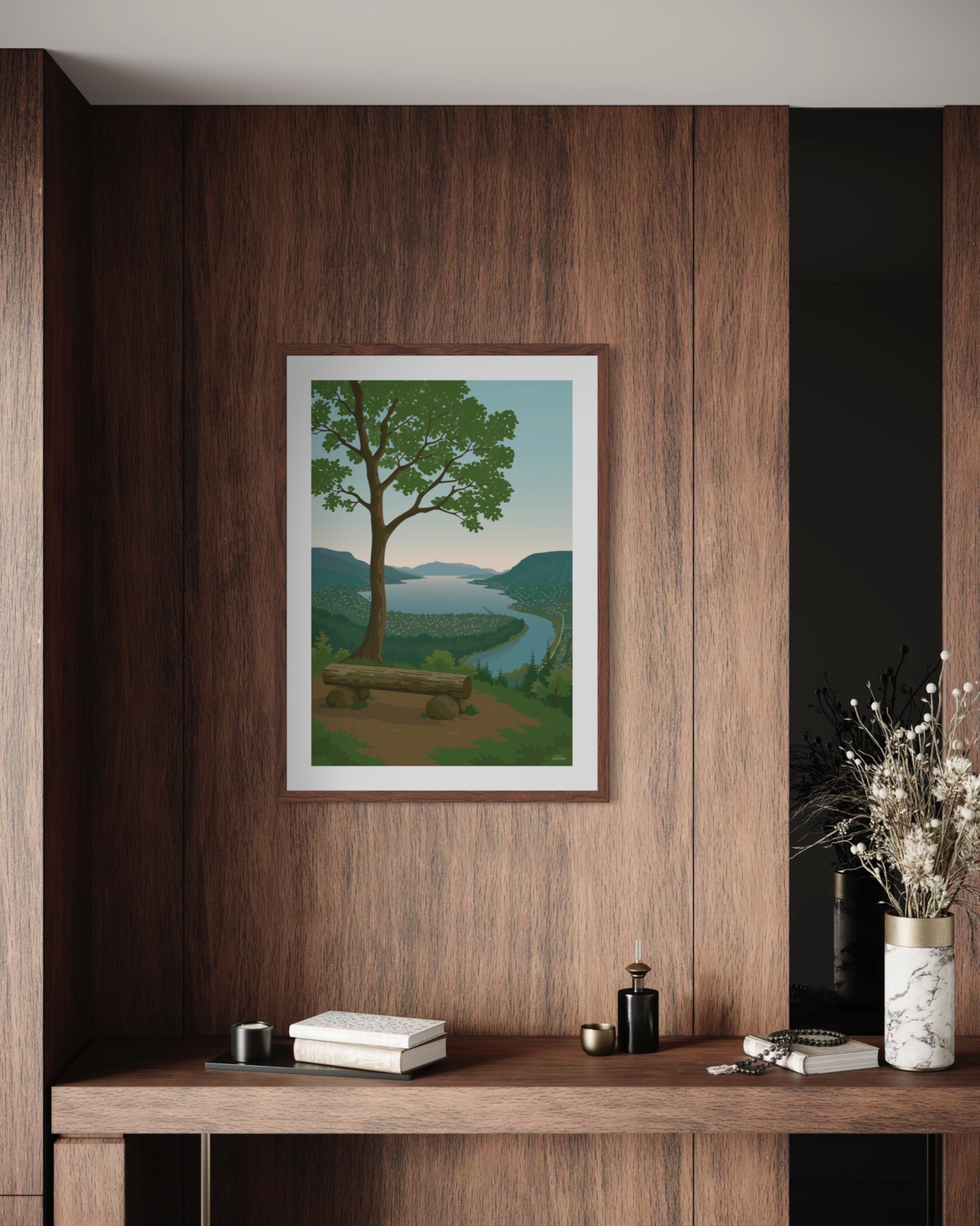 Tegnet for hånd med rene linjer og enkel fargepalett. Trykket av Cewe (Japan Foto) høykvalitets matt fotopapir. Papiret er rikt på kontraster og har sterke farger.